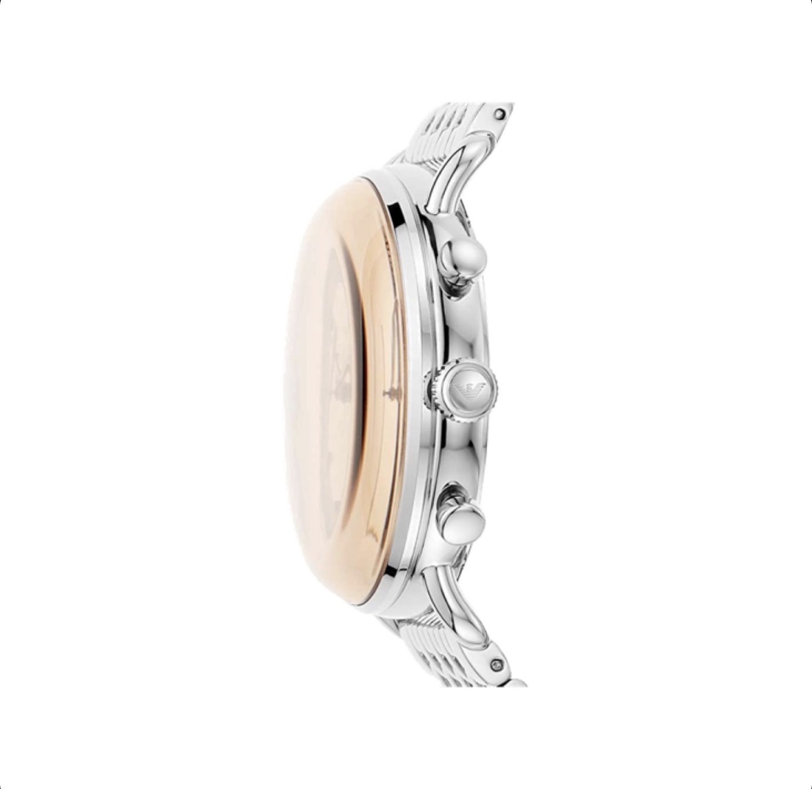این ساعت در ابعاد قطر قاب 43 میلیمتر ضخامت قاب 12 میلیمتر عرض بند 22 میلیمتر طراحی شده است. از ویژگی های تخصصی این ساعت میتوان به تقویم ، کرنوگراف و نمایش 24 ساعته اشاره کرد. جنس بند و جنس بدنه این ساعت از استیل ضد حساسیت با کیفیت (318 میکرون) می باشد. مقاومت این ساعت در برابر آب 5 اتمسفر می باشد.